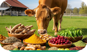 Herbs like Triphala and Ginger help in improving digestion, reducing bloating and maintaining a healthy gut in livestock